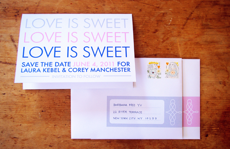 S A V E _ T H E _ D A T E digital printing Folded card with labelled lollipops and custom tape. Envelopes with wrapped address stickers. © 2010 Pounding Mill Press | Based in Oakland CA | Contact us at info at poundingmillpress.com