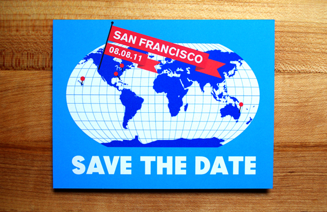 For travelers and adventurers. Available in the colors and fonts of your choice, the card maps out the location and date of your big day.