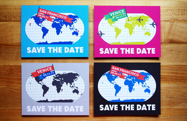 For travelers and adventurers. Available in the colors and fonts of your choice, the card maps out the location and date of your big day.